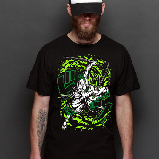 One Piece Zoro T-Shirt Cotton Block Tee Japanese anime