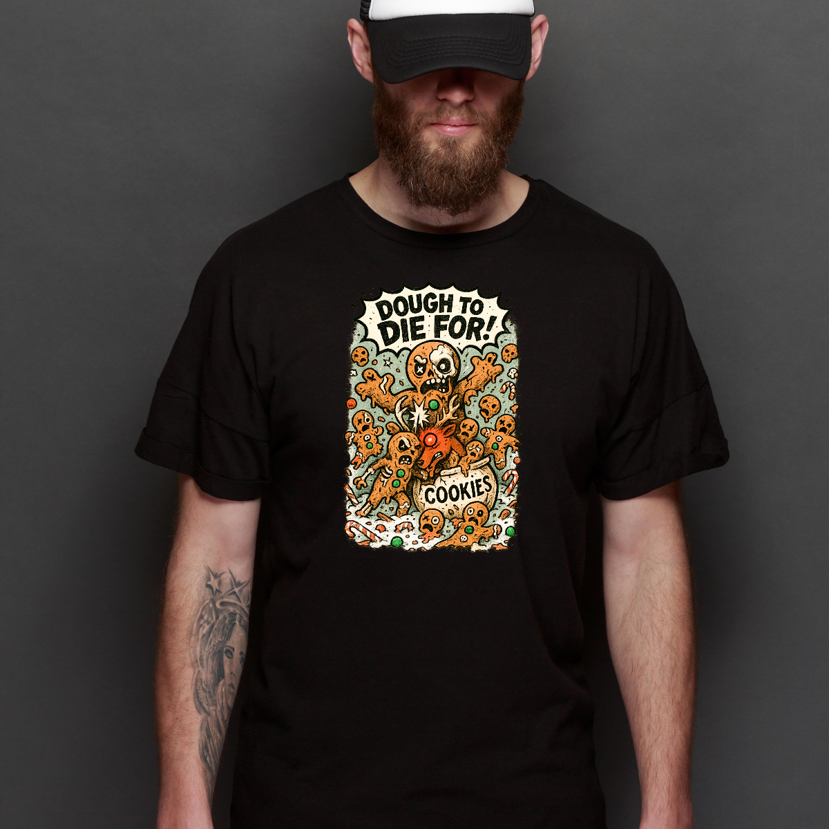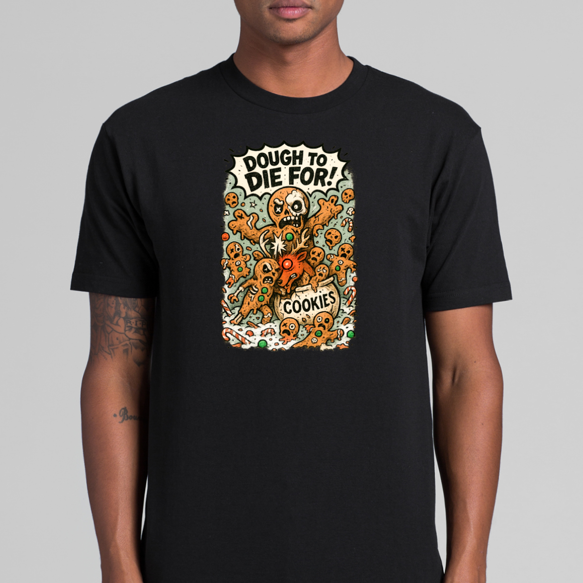 Gingerbread man "Dough to Die for" Christmas T-Shirt Cartoon Tee